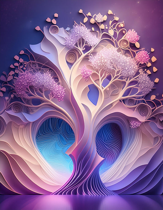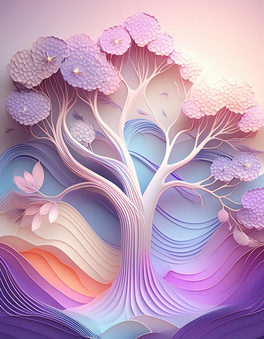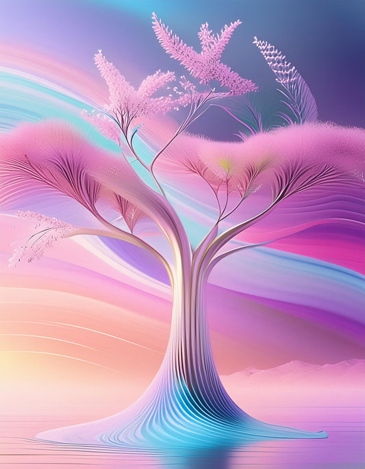 3D Cherry Blossom Tree Futuristic Chromatic Soft Vibrant Wall Mural | Natural Decor Wallpaper