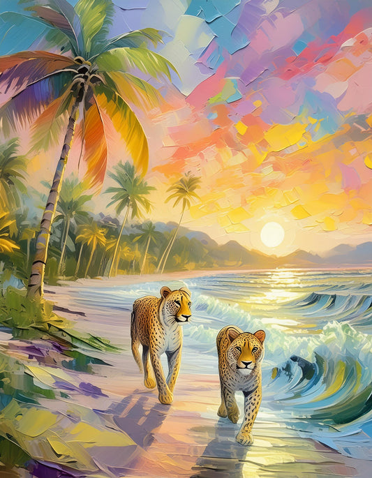 Artistic Painting Felines & Animals on Beach Mural | Stylish Home Decor & Prints
