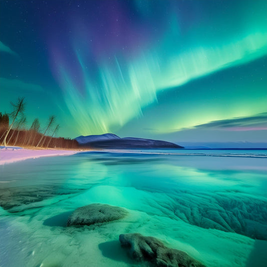 Beautiful Beach Mural Aurora Borealis Colors Wall Mural | Nature-Inspired Wallpaper