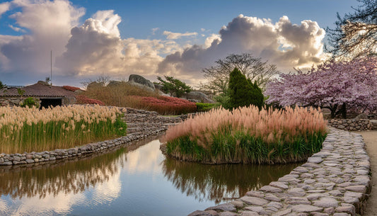 Garden Colorful Flowers With Blue Clouds like Cotton Wall Mural | Nature-Inspired Wallpaper