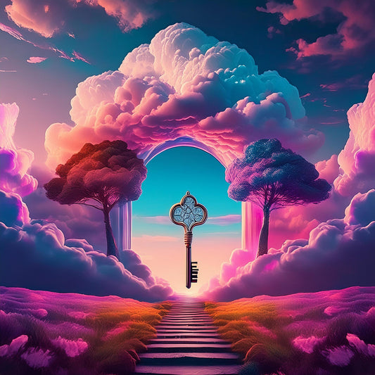 Radiant Trees keys To The Sky Wall Mural | Relaxing Space Wallpaper