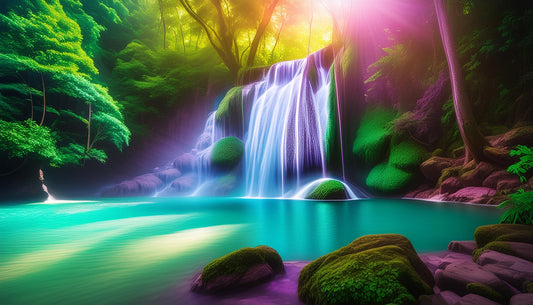 Sunlit Waterfall Amidst Vibrant Forest Wall Mural | Natural Artistic Decor Wallpaper