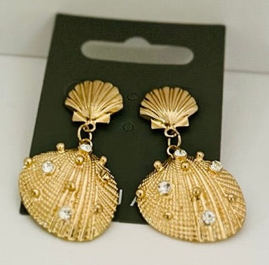 Gold Crystal Seashell Drop Earrings | Gift Earrings