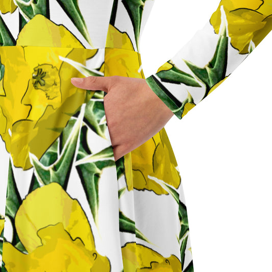 Bold yellow flowers photography Long sleeve Midi Dress | Nature Inspired