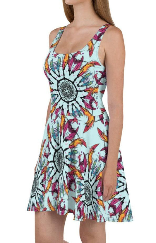 Feminine Feather Pattern Skater Dress | Oversized Dress | Gift For Her